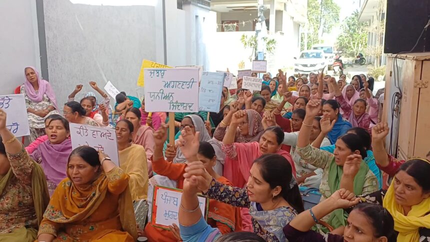 27 ਫਰਵਰੀ (ਸ਼ਿਵ ਸੋਨੀ) ਰਾਮਪੁਰਾ ਫੂਲ, ਬਠਿੰਡਾ: ਆਂਗਨਵਾੜੀ ਵਰਕਰਾਂ ਵੱਲੋਂ ਆਪਣੀਆਂ ਮੰਗਾਂ ਨੂੰ ਲੈ ਕੇ ਹਲਕਾ ਰਾਮਪੁਰਾ ਫੂਲ ਦੇ ਵਿਧਾਇਕ ਬਲਕਾਰ ਸਿੰਘ ਸਿੰਧੂ ਦੇ ਘਰ ਅੱਗੇ ਧਰਨਾ ਦਿੱਤਾ ਗਿਆ। ਵਰਕਰਾਂ ਨੇ ਆਪਣਾ ਮੰਗ ਪੱਤਰ ਪੇਸ਼ ਕਰਦੇ ਹੋਏ ਦੱਸਿਆ ਕਿ ਕੇਂਦਰ ਵੱਲੋਂ ਉਨ੍ਹਾਂ ਦਾ ਵੇਤਨ ਸਮੇਂ ਸਿਰ ਮਿਲ ਜਾਂਦਾ ਹੈ, ਪਰ ਪੰਜਾਬ ਸਰਕਾਰ ਵੱਲੋਂ ਮਿਲਣ ਵਾਲਾ ਵੇਤਨ ਸਮੇਂ ‘ਤੇ ਜਾਰੀ ਨਹੀਂ ਕੀਤਾ ਜਾਂਦਾ।