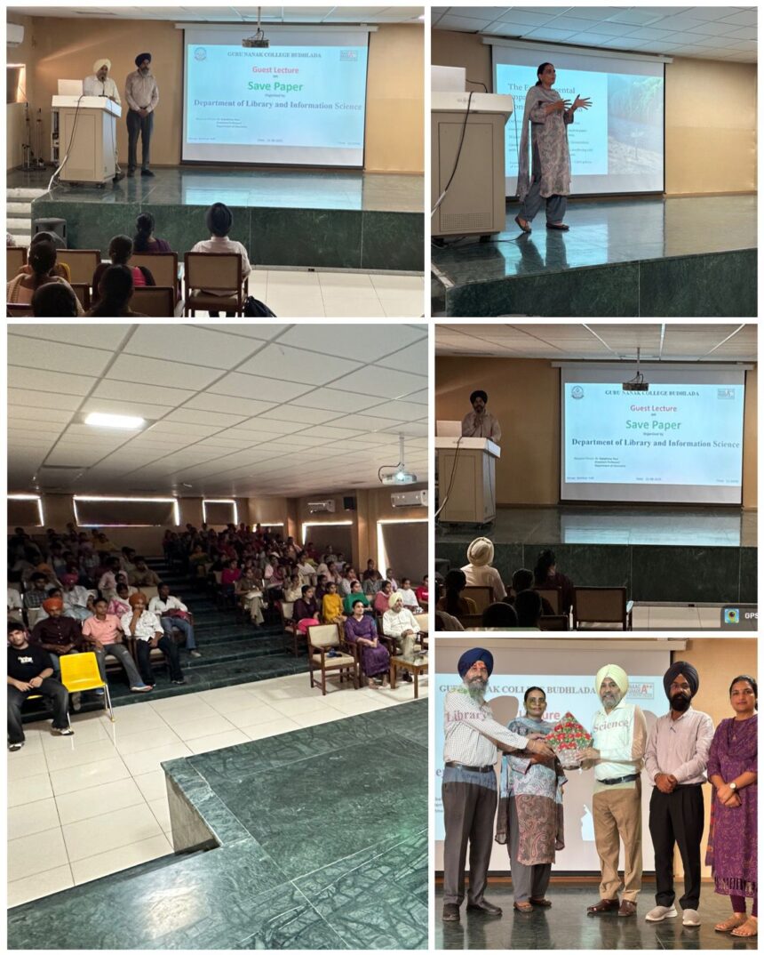ਬੁਢਲਾਡਾ 21 ਅਗਸਤ (ਨਾਨਕ ਸਿੰਘ ਖੁਰਮੀ)ਉੱਤਰੀ ਭਾਰਤ ਦੀ ਸਿਰਮੌਰ ਅਤੇ ਆਟੋਨੌਮਸ ਸੰਸਥਾ ਗੁਰੂ ਨਾਨਕ ਕਾਲਜ ਬੁਢਲਾਡਾ ਵਿਖੇ ਪ੍ਰਿੰਸੀਪਲ ਡਾ. ਨਰਿੰਦਰ ਸਿੰਘ ਦੀ ਯੋਗ ਅਗਵਾਈ ਹੇਠ ‘ਕਾਗਜ਼ ਬਚਾਓ ਰੁੱਖ ਲਗਾਓ ‘ ਮੁਹਿੰਮ ਤਹਿਤ ਲਾਇਬਰੇਰੀ ਅਤੇ ਸੂਚਨਾ ਵਿਗਿਆਨ ਵਿਭਾਗ ਵਲੋਂ ਵਿਸ਼ੇਸ਼ ਸੈਮੀਨਾਰ ਦਾ ਆਯੋਜਨ ਕੀਤਾ ਗਿਆ । ਜਿਸ ਵਿੱਚ ਵੱਡੀ ਗਿਣਤੀ ਵਿੱਚ ਵਿਦਿਆਰਥੀਆਂ ਅਤੇ ਅਧਿਆਪਕ ਸਾਹਿਬਾਨ ਨੇ ਭਾਗ ਲਿਆ । ਇਸ ਸਮੇਂ ਵਿਦਿਆਰਥੀਆਂ ਨੂੰ ਸੰਬੋਧਨ ਕਰਦਿਆਂ ਪ੍ਰਿੰਸੀਪਲ ਡਾ. ਨਰਿੰਦਰ ਸਿੰਘ ਜੀ ਨੇ ਵਾਤਾਵਰਣ ਦੀ ਸਾਫ਼ ਸਫ਼ਾਈ ਅਤੇ ਕੁਦਰਤ ਨਾਲ ਇਕਮਿਕ ਹੋ ਕੇ ਜੀਵਨ ਜਿਊਣ ਬਾਰੇ ਵੱਖ-ਵੱਖ ਉਦਾਹਰਨਾਂ ਦੇ ਕੇ ਆਪਣੇ ਵਿਚਾਰ ਸਾਂਝੇ ਕੀਤੇ। ਉਹਨਾਂ ਦੱਸਿਆ ਕਿ ਅੱਜ ਦੇ ਸਮੇਂ ਵਿੱਚ ਸਾਨੂੰ ਕਾਗਜ਼ ਦੀ ਘੱਟ ਤੋਂ ਘੱਟ ਵਰਤੋਂ ਕਰਕੇ ਸਾਡੇ ਵਾਤਾਵਰਨ ਅਤੇ ਦਰੱਖਤਾਂ ਨੂੰ ਬਚਾਉਣਾ ਚਾਹੀਦਾ ਹੈ ਤਾਂ ਜੋ ਅਸੀਂ ਆਪਣੀਆਂ ਆਉਣ ਵਾਲੀਆਂ ਪੀੜ੍ਹੀਆਂ ਲਈ ਪੌਣ ਪਾਣੀ ਬਚਾਅ ਕੇ ਰੱਖ ਸਕੀਏ । ਇਸ ਸਮੇਂ ਡਾ. ਬਬਲਦੀਪ ਕੌਰ, ਸਹਾਇਕ ਪ੍ਰੋਫੈਸਰ ਕੈਮਿਸਟਰੀ ਵਿਭਾਗ ਨੇ ਕਾਗਜ਼ ਬਚਾਓ ਵਿਸ਼ੇ ਤੇ ਵਿਸ਼ੇਸ਼ ਲੈਕਚਰ ਦਿੱਤਾ ਅਤੇ ਕਾਗਜ਼ ਨੂੰ ਦੁਬਾਰਾ ਵਰਤੋਂ ਵਿੱਚ ਲਿਆਉਣ ਵਾਲੀਆਂ ਵਿਧੀਆਂ ਵਿਦਿਆਰਥੀਆਂ ਨਾਲ ਸਾਂਝੀਆਂ ਕੀਤੀਆਂ । ਉਹਨਾਂ ਦੱਸਿਆ ਕਿ ਕਾਗਜ਼ ਤਿਆਰ ਕਰਨ ਲਈ ਬਹੁਤ ਸਾਰੇ ਦਰੱਖਤਾਂ ਦੀ ਕਟਾਈ ਹਰ ਸਾਲ ਕੀਤੀ ਜਾਂਦੀ ਹੈ ਜਿਸ ਨਾਲ ਆਕਸੀਜਨ ਦਾ ਪੱਧਰ ਦਿਨੋਂ ਦਿਨ ਘੱਟ ਰਿਹਾ ਹੈ ਅਤੇ ਪ੍ਰਦੂਸ਼ਨ ਵੱਧ ਰਿਹਾ ਹੈ। ਇਸ ਸਮੇਂ ਲਾਇਬਰੇਰੀ ਅਤੇ ਸੂਚਨਾ ਵਿਗਿਆਨ ਵਿਭਾਗ ਦੇ ਮੁਖੀ ਡਾ. ਹਰਵਿੰਦਰਜੀਤ ਸਿੰਘ ਨੇ ਵਿਦਿਆਰਥੀਆਂ ਨਾਲ ਆਪਣੇ ਵਿਚਾਰ ਸਾਂਝੇ ਕੀਤੇ । ਸੈਮੀਨਾਰ ਦੇ ਅਖੀਰ ਵਿੱਚ ਡਾ. ਇੰਦਰਜੀਤ ਸਿੰਘ ਨੇ ਆਏ ਹੋਏ ਪ੍ਰੋਫੈਸਰ ਸਾਹਿਬਾਨ ਅਤੇ ਵਿਦਿਆਰਥੀਆਂ ਦਾ ਧੰਨਵਾਦ ਕੀਤਾ । ਇਸ ਸਮੇਂ ਹੋਰਨਾਂ ਤੋਂ ਇਲਾਵਾ ਡਾ. ਸੰਧਿਆ ਵਾਤਿਸ, ਪ੍ਰੋ. ਗੁਰਦੀਪ ਸਿੰਘ, ਪ੍ਰੋ. ਗੁਰਪ੍ਰੀਤ ਸਿੰਘ , ਪ੍ਰੋ. ਗੁਰਵਿੰਦਰ ਸਿੰਘ ਅਤੇ ਵੱਡੀ ਗਿਣਤੀ ਵਿੱਚ ਵਿਦਿਆਰਥੀ ਹਾਜ਼ਰ ਸਨ ।