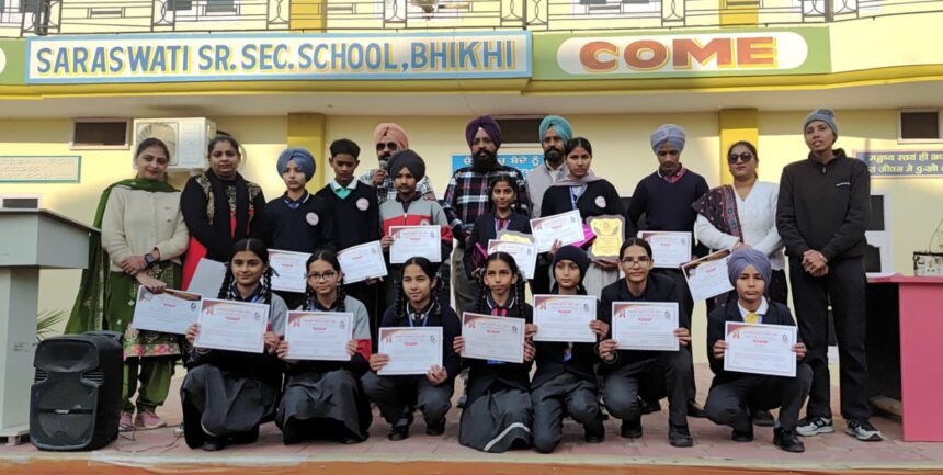 ਸਥਾਨਕ ਸਰਸਵਤੀ ਪਬਲਿਕ ਸਕੂਲ ਭੀਖੀ ਦੇ ਵਿਦਿਆਰਥੀਆਂ ਜਿਨ੍ਹਾਂ ਨੇ ਤਰਕਸ਼ੀਲ ਸੁਸਾਇਟੀ ਦੀ ਚੇਤਨਾ ਪਰਖ ਪ੍ਰੀਖਿਆ ਦਿੱਤੀ ਸੀ l ਮੈਰਿਟ ਚ ਆਉਣ ਵਾਲੇ ਪ੍ਰੀਖਿਆਰਥੀ ਨੂੰ ਵਿਸ਼ੇਸ਼ ਤੌਰ ਤੇ ਸਨਮਾਨਿਤ ਕੀਤਾ ਗਿਆ l ਤਰਕਸ਼ੀਲ ਸੁਸਾਇਟੀ ਦੇ ਆਗੂ ਭੁਪਿੰਦਰ ਫ਼ੌਜੀ ਨੇ ਕਿਹਾ ਇਹ ਪ੍ਰੀਖਿਆ ਬੱਚਿਆਂ ਨੂੰ ਸਾਡੇ ਸਾਣਮੱਤੇ ਇਤਿਹਾਸ ਸਾਡੇ ਸੂਰਵੀਰ ਯੋਦਿਆਂ ਵਾਰੇ ਜਾਣੂ ਕਰਵਾਉਣਾ ਬੱਚਿਆਂ ਦਾ ਬੋਧਿਕ ਪੱਧਰ ਉੱਚਾ ਚੁੱਕਣਾ, ਅੰਧਵਿਸ਼ਵਾਸ ਤੋਂ ਕੱਢਣ ਲਈ, ਮੋਬਾਇਲ ਫ਼ੋਨਾਂ ਤੋਂ ਹਟਾ ਕੇ ਕਿਤਾਬਾਂ ਨਾਲ ਜੋੜਨਾ ਤੇ ਵਿਗਿਆਨਕ ਸੋਚ ਦੇ ਧਾਰਨੀ ਬਣਾਉਣਾ ਹੈ l ਜਿਸ ਵਿੱਚ ਸੱਤਵੀਂ ਕਲਾਸ ਦੀ ਵਿਦਿਆਰਥਣ ਖੁਸਪ੍ਰੀਤ ਕੌਰ ਤੇ ਬਾਰ੍ਹਵੀਂ ਕਲਾਸ ਦੀ ਰੁਪਿੰਦਰਜੀਤ ਕੌਰ ਨੇ ਸਕੂਲ ਵਿੱਚੋਂ ਪਹਿਲਾ ਸਥਾਨ ਹਾਸਲ ਕੀਤਾ ਉਨ੍ਹਾਂ ਨੂੰ ਮੋਮੈਟੋ,ਸਨਮਾਨ ਪੱਤਰ ਤੇ ਕਿਤਾਬਾਂ ਦਾ ਸੈੱਟ ਦੇ ਕੇ ਸਨਮਾਨਤ ਕੀਤਾ ਗਿਆ l ਨਾਲ ਹੀ ਗੁਰਨੂਰ ਕੌਰ , ਗੁਰਲੀਨ ਕੌਰ,ਏਕਮਜੋਤ ਕੌਰ,ਨਵਜੋਤ ਕੌਰ, ਭੁਪਿੰਦਰ ਸਿੰਘ, ਖੂਸਪ੍ਰੀਤ ਕੌਰ, ਗਗਨਦੀਪ ਕੌਰ,ਜਸਮੀਤ ਸਿੰਘ,ਗੋਰੀ ਸ਼ਰਮਾ, ਦਮਨਪ੍ਰੀਤ ਸਿੰਘ, ਰਣਜੀਤ ਸਿੰਘ ਨੂੰ ਤਰਕਸ਼ੀਲ ਸੁਸਾਇਟੀ ਵੱਲੋਂ ਸਰਟੀਫਿਕੇਟ ਦੇ ਸਨਮਾਨਤ ਕੀਤਾ ਗਿਆ l ਇਸ ਮੌਕੇ ਸਕੂਲ ਇੰਚਾਰਜ ਦੀਪਕਾ ਰਾਣੀ,ਕੁਲਵੀਰ ਕੌਰ ਮਨਪ੍ਰੀਤ ਕੌਰ , ਕਰਮਜੀਤ ਕੌਰ, ਸ਼ਿਖਾ ਰਾਣੀ, ਜਸਪ੍ਰੀਤ ਕੌਰ , ਤਰਕਸ਼ੀਲ ਆਗੂ ਅਵਤਾਰ ਸਿੰਘ ਡਿਜੀਟਲ ਸੁਖਵਿੰਦਰ ਸਿੰਘ, ਜਸਪਾਲ ਅਤਲਾ, ਹਰਭਜਨ ਬਬੇਕਾ ਤੋਂ ਇਲਾਵਾ ਸਕੂਲ ਸਟਾਫ਼ ਹਾਜ਼ਰ ਸੀ l