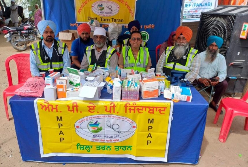 ਪੰਜਾਬ ਵਿੱਚ ਹੜ ਪ੍ਰਭਾਵਿਤ ਇਲਾਕਿਆਂ ਦੇ ਲੋਕਾਂ ਦੀ ਸਿਹਤ ਸੰਭਾਲ ਲਈ ਮੈਡੀਕਲ ਪ੍ਰੈਕਟੀਸ਼ਨਰਜ਼ ਐਸੋਸੀਏਸ਼ਨ ਪੰਜਾਬ (ਰਜਿ: 295) ਵੱਲੋਂ ਚਲਾਇਆ ਜਾ ਰਿਹਾ ਫਰੀ ਮੈਡੀਕਲ ਕੈਂਪ ਮੁਹਿੰਮ ਅੱਜ ਦਸਵੇਂ ਦਿਨ ਵੀ ਪੂਰੀ ਸ਼ਿੱਦਤ ਅਤੇ ਜਜ਼ਬੇ ਨਾਲ ਜਾਰੀ ਰਹੀ।
