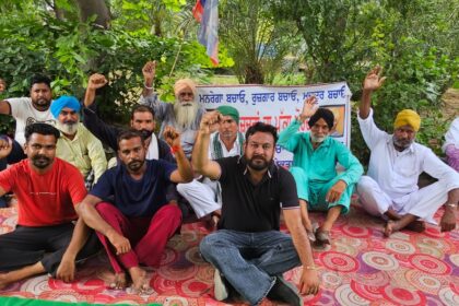 ਕੇਂਦਰ ਤੇ ਪੰਜਾਬ ਸਰਕਾਰ ਵੱਲੋਂ ਮਨਰੇਗਾ ਕਾਨੂੰਨ ਤਹਿਤ ਹੁੰਦੇ ਕੰਮਾਂ ਨੂੰ ਬੰਦ ਕਰਨ ਖਿਲਾਫ਼ ਪੱਕਾ ਮੋਰਚਾ ਪੰਜਵੇਂ ਦਿਨ ਵੀ ਜਾਰੀ