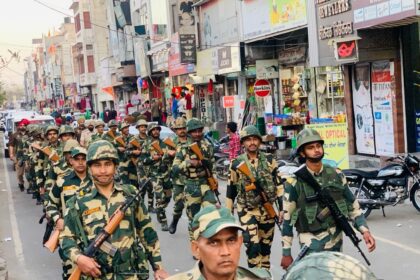 ਬਰਨਾਲਾ ਪੁਲਿਸ, ਬੀ.ਐੱਸ.ਐੱਫ. ਵੱਲੋਂ ਅਗਾਮੀ ਲੋਕ ਸਭਾ ਚੋਣਾਂ 2024 ਦੇ ਮੱਦੇਨਜ਼ਰ ਸ਼ਹਿਰ ‘ਚ ਫਲੈਗ ਮਾਰਚ