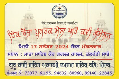 ਗੁਰੂ ਕਾਸ਼ੀ ਸਾਹਿਤ ਅਕਾਦਮੀ ਵੱਲੋਂ ਇੱਕ ਰੋਜ਼ਾ ਪੁਸਤਕ ਮੇਲਾ 17 ਸਤੰਬਰ ਨੂੰ