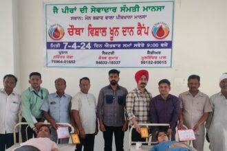 ਜੈ ਪੀਰਾਂ ਦੀ ਸੇਵਾਦਾਰ ਸੰਮਤੀ ਮਾਨਸਾ ਵੱਲੋਂ ਚੌਥਾ ਵਿਸ਼ਾਲ ਖੂਨਦਾਨ ਕੈਂਪ ਲਗਾਇਆ ਗਿਆ