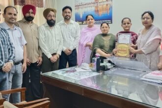 ਜ਼ਿਲ੍ਹੇ ਵਿੱਚ ਪਹਿਲਾ ਸਥਾਨ ਹਾਸਲ ਕਰਨ ਵਾਲੀ ਵਿਦਿਆਰਥਣ ਮਹਿਕਪ੍ਰੀਤ ਕੌਰ ਨੂੰ ਕੀਤਾ ਸਨਮਾਨਿਤ